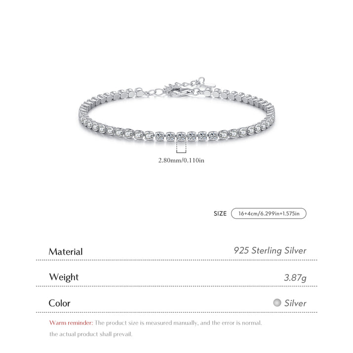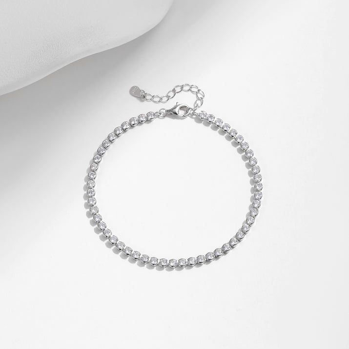 Answer 2: Yes, the bracelet features sparkling round clear cubic zirconia stones, known for their brilliance and resemblance to real diamonds, providing an elegant look.